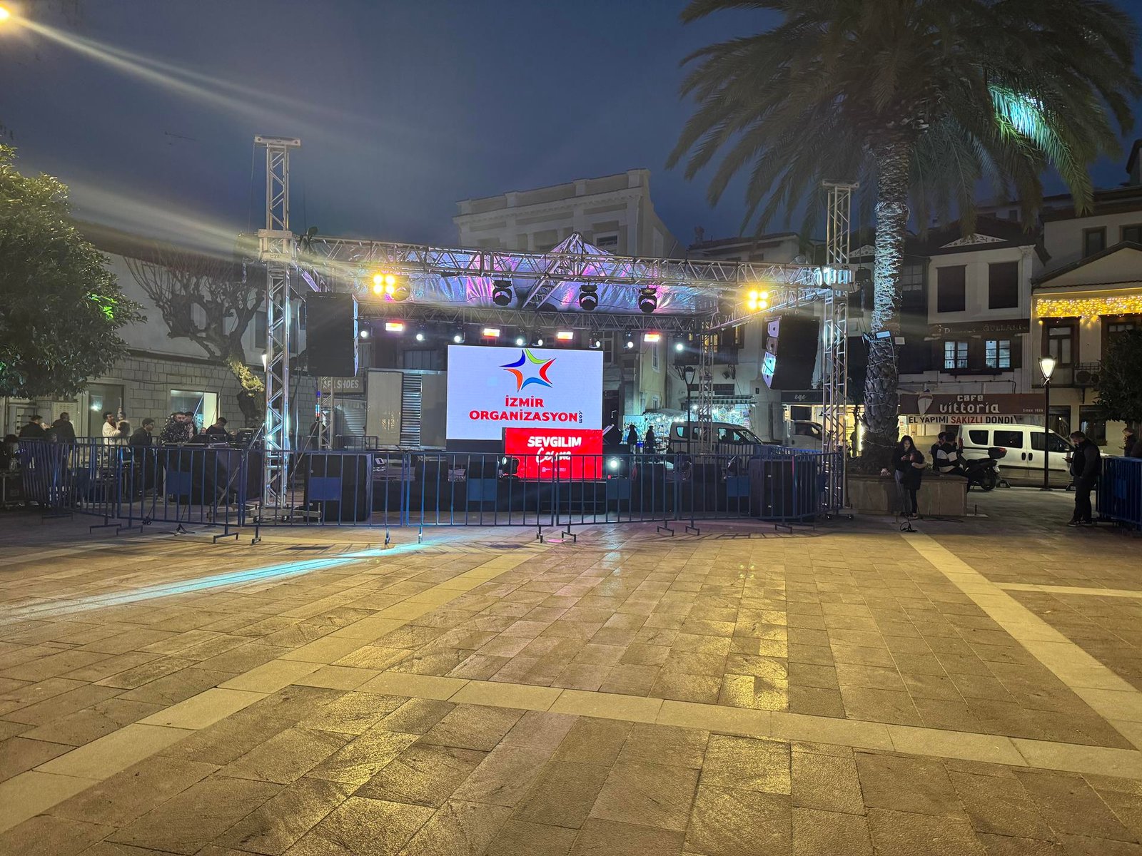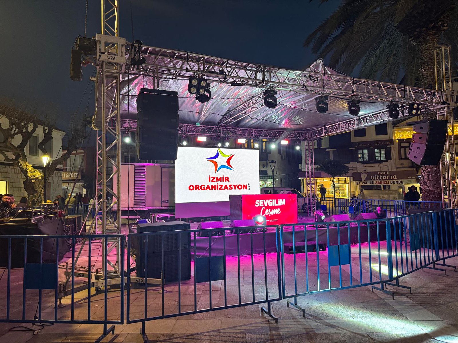 Etkinlik kapsamında Çeşme Meydan konser organizasyonu da firmamız tarafından profesyonel şekilde gerçekleştirildi. Kurulan sahne sistemi, güçlü ses ve ışık sistemleri, LED ekran kurulumu ve teknik altyapı hizmetlerinin tamamı İzmir Event Organizasyon ekibi tarafından planlandı ve uygulandı. Meydanın yapısına uygun şekilde hazırlanan sahne kurulumu, hem görsel açıdan etkileyici hem de teknik olarak başarılı bir konser alanı oluşturdu.